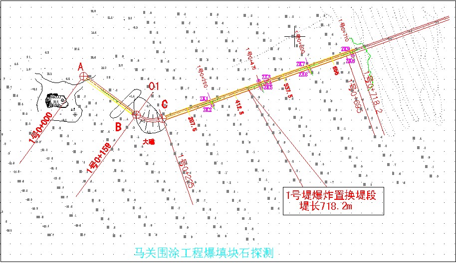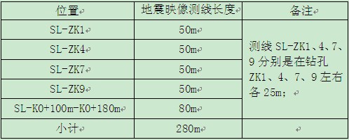 沿堤轴线布置5条,其中钻孔附近单条长度为50m,大礁附近一条测线长80m。