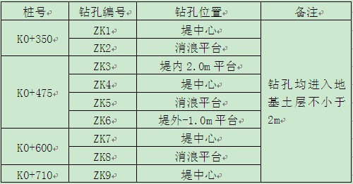 本次共布置4条钻探横剖面,分别位于K0+350、K0+475、K0+600及K0+710,其中断面K0+350及K0+600布置2只钻孔,断面K0+475布置4只钻孔,K0+710布置1只钻孔。