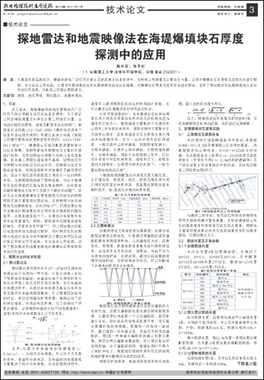 摘 要:在我国东部沿海地区,爆破挤淤法广泛应用于软土及淤泥质土地基处理中,为检测工程质量及计算块石方量,必须对爆填块石的厚度及底面形态进行探测。本文结合工程实践,主要使用探地雷达法和地震映像法结合钻孔揭露,对爆填块石厚度及底界形态进行探查,说明了探地雷达和地震映像法在实际中的应用效果,并此类工程提出探测建议。