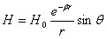 工作面电磁波透视法采用偶极子天线发射,在介质中任意点的磁场表达式可 表示为: