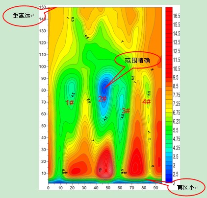 5)探测时要注意测道-电压图,根据电压、离差值大小判断数据质量。