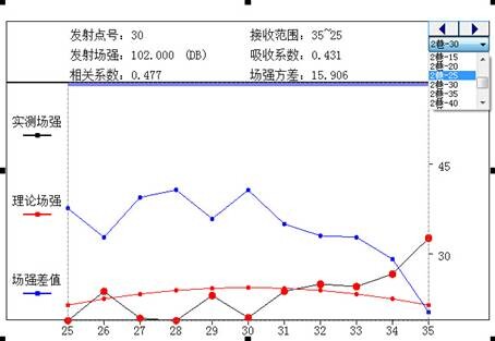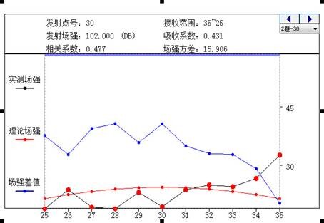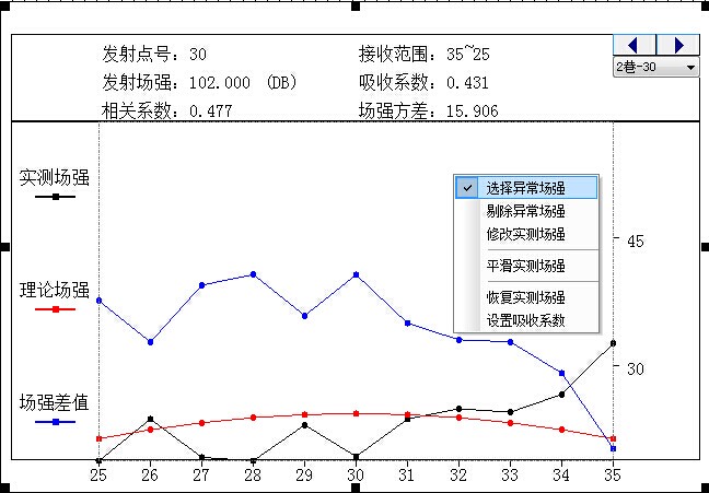 鼠标左键不放选中异常场强点25~30#点,黑色实测场强曲线中的点变为红色大点,如下图:
