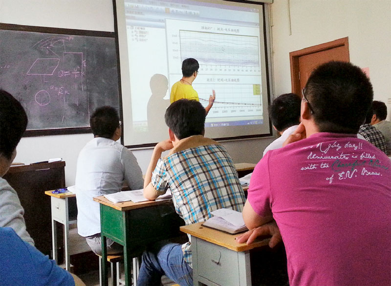 由于汾西矿业集团公司采购我们的瞬变电磁仪有12台,下面很多矿都有瞬变电磁仪,他们在使用过程中也遇到了一些问题,正好借此机会请教卢小龙,卢小龙对于他们的问题一一进行了解答。下午卢小龙主要讲了KDZ1114-6A30和KDZ1114 -6B30这两款仪器,卢小龙分别就这两款仪器的探测原理、现场操作、数据处理、成果解释进行讲解培训。由于这两款仪器的基本探测原理都是利用地震波的反射性质,探测原理基本都是一样,只是KDZ1114-6A30只能接收检波器前方反射波,而KDZ1114-6B30可以接收三个方向的反射波。地震波探测进行数据处理最重要的是确定反射相位和地震波综合速度的确定,地震波速度大小决定我们所确定异常界面的位置。当我们在一个从未进行过地震波探测的地方进行探测时,这就要求我们要通过实验确定该区域地震波的综合速度,我们可以在异常位置已知的地方做实验,以便确定波速或者我们可以在进行数据处理时先使用一个经验波速,然后根据验证情况修改波速。