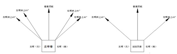 图3-2 皮带巷、总回风巷、第二联络巷及第三联络巷单个测点布置示意图