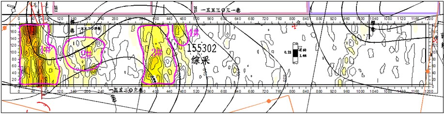 155302综采工作面无线电波透视法探测结果与验证结果对比图
