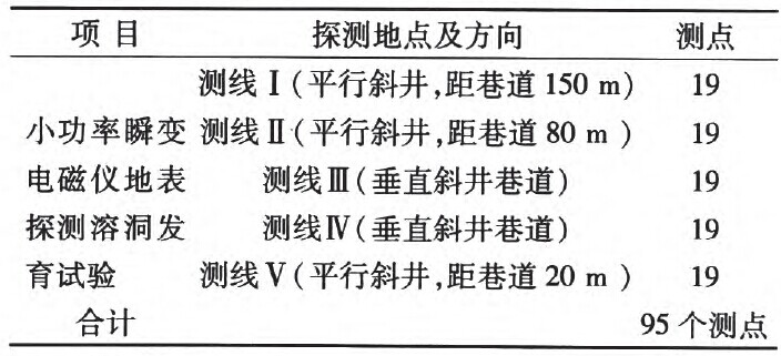 由于测线I、II、V布置平行于巷道开拓方向,因此在巷道开拓至距地表30m左右时候需要设计钻孔进行探放水,由于溶洞的范围均来自巷道右帮,因此设计钻场布置在巷道右帮,在对预测的相对富水区进行打钻放水,先期在在距地表30m、40、50m相对富水区各施工钻孔3个。经钻探及巷道揭露验证,巷道掘进中,巷道右帮平均涌水量17m3/h,最大突水量为40m3/h。分析圈定富水异常区总放水量为1100m3。小功率瞬变电磁法在浅表层探测溶洞发育及富水性时具有一定的准确性,能够为煤矿的安全生产提供一定的技术支持。