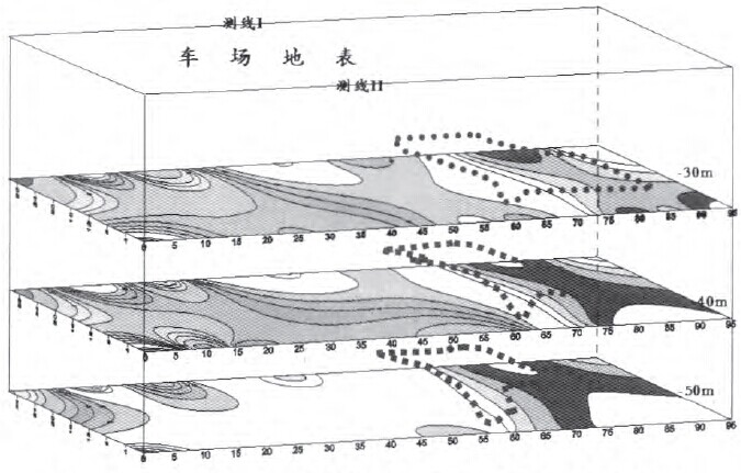 图5 测线I与测线Il纵向深度视电阻率切片图