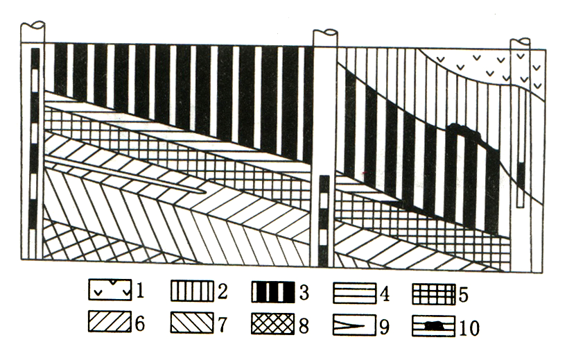 6—瘦煤;7—焦煤;8—焦肥煤;9—夹矸;10—采样点