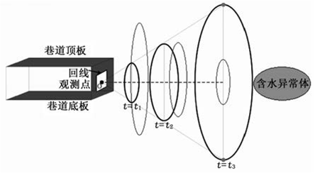1.2 TEM超前探水原理瞬变电磁法(Transient Electromagnetic Method,简称TEM),是利用不接地回线(线圈)或接地导线发射脉冲电流作为场源,在发射脉冲的间隙利用回线或接地电极测量二次场随时间的变化。对测量得到的异常进行分析,得出地下不均匀导电体的性能和位置,达到解决地质问题的目的[6-10]。