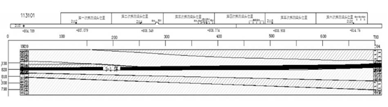 图4中施工的6次连续超前探测,巷道掘进距离约600m,在所解释的低阻异常区内出现多处淋水现象,高阻区域巷道掘进正常,根据图5实测水文地质剖面图看出,第一次探测阻值相对较高,顶板岩性以泥岩和砂质泥岩为主,在掘进过程中没有滴水现象,第四次探测阻值相对较低,顶板岩性以砂岩为主,掘进过程中出现滴水现象,说明工作面顶板随着砂岩厚度的增加,存在一定的富水性。探测实践结果表明,巷道掘进揭露地质条件与超前物探剖面中电性分布异常解释的一致性较好,对安全生产发挥了指导作用,同时也为后续煤层巷道掘进及煤炭资源回采提供技术参考。