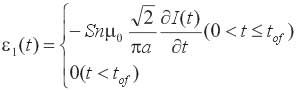 令电流关断起始时间为0,关断时间为tof,根据Faraday电磁感应定律,坑道瞬变电磁中心回线装置条件下,回线中心点的一次电动势可表示为[15]
