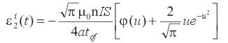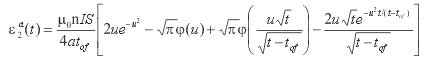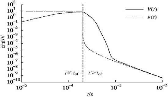 联合式(7)、(9)、(10)和(11),可推导电流线性关断时,全空间瞬变电磁感应电动势的表达式:感应段(0<t≤tof):