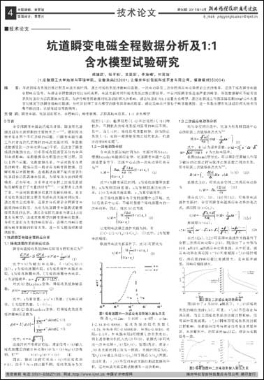 给出了一次电动势表达式,并推导发射电流线性关断条件下全程二次感应电动势算法,利用理论全程数据与接收系统的冲激响应函数的卷积,获得了坑道瞬变电磁全程数据的响应特征,确定电流关断时间及接收系统过渡过程给瞬变场早、中延时数据造成严重畸变。建立了坑道超前1:1定量含水体模型,通过在坑道掘进工作面连续观测模型内不同水量对应的瞬变场响应数据,分析确定了水体受多匝小回线源激励,产生了瞬变场信号;利用不同水量时水体的异常响应曲线对比,确定:①坑道前方含水体在感应段产生负电动势,在衰减段产生正电动势,该结果与理论数据一致;②随水量线性递增,水体异常电动势绝对值在对数域呈线性上升,但在感应段上升快,衰减段上升相对慢;本试验中100m³ 水的最大瞬变响应延时为0.28ms,在采样时窗中基本属于畸变段,说明实际坑道超前探水需进一步研究利用畸变段数据,以提高对坑道超前近距离水体的识别能力。