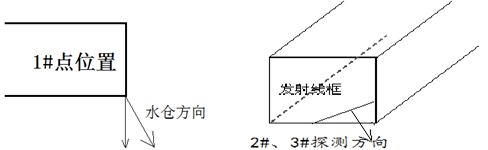 本次探测于2015年1月12日进行,根据探测任务和现场实际情况,本次数据采集在新化煤炭局稠木矿2水平进行,1#点共布置7个测点,相邻测点间距为3m,测线长18m,每个测点分两个方向探测,同方向重复采集2组数据;探测方向是垂直底板、垂直水仓方向;2#、3#点各布置8个测点,相邻测点间距为3m,测线长21m,每个测点同方向采集1组数据;探测方向左帮底板75°;根据探测任务和现场施工条件,1#、2#、3#点现场施工示意图如3-2、3-3。