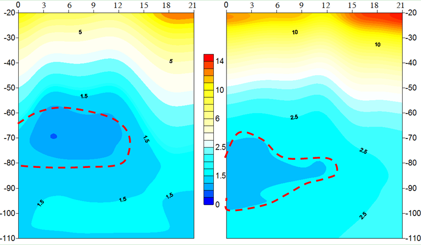 f、仪器最显著的特点在于具备了现场解析能力,同时对应的解析软件具备三维联合反演技术可查看不同深度的视电阻率分布切片图和异常体在三维立体空间的分布状态;