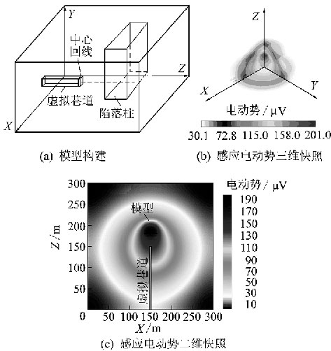 图5陷落柱模型及t=2500μs时感应电动势快照