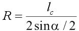 式中:R为底板曲率半径,m;lc为底板凸起段延伸长度的1/2,m;α为底板凸起段极点两侧中心点处倾角差的绝对值,(°)