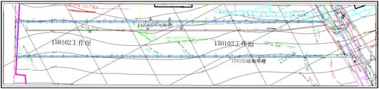 本次井下无线电波坑道透视探测位于150102工作面,工作量布置在工作面两侧的150102运输顺槽、150102回风顺槽内。(具体施工位置见图1-1)