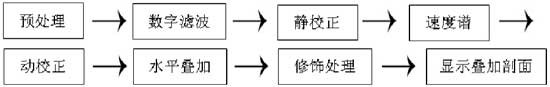 处理方法:单点法通过实测中多次垂直叠加消除干扰波采集原始信号,再进行室内回放进一步细化处理。除了可抽取各偏移距单道记录进行处理外,还可进行多道叠加处理,其处理流程如下: