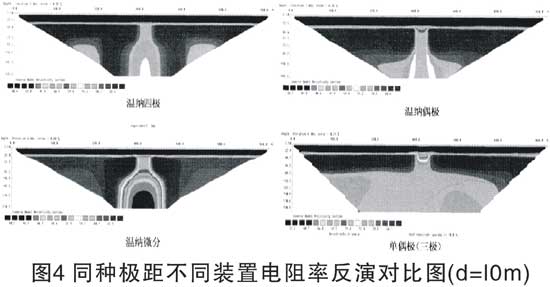 ①当目标体所在位置深度相对较深或电极数量有限时,优先选片J极装置(单偶极装置);当要求垂直分辨率较高时,推荐选用温纳偶极、温纳四极、温纳微分装置。