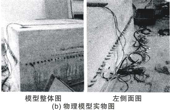 室内物理模型材料选取以河砂为骨料,水泥、石膏为胶结物的相似材料,同时参照前人研究配制砂、水泥、石膏相似材料时的配比方式建立室内工程场地模型。同时,材料在混合时采用搅拌机均匀搅拌,在模型填料过程使用棒式振捣器进行密实,模型如图6所示,具体模型参数如下。