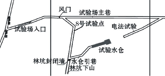 为了研究井下巷道实际探测环境下,矿井瞬变电磁测试线圈附近金属物对瞬变电磁场产生的响应特征,试验对同一个探测目标体在不同金属物探测背景进行测量与对比分析。试验地点为福建将乐华虹矿井物探试验基地地下试验场(见图1),实验区地层是二叠系下统童子岩组地层,为海陆交互相含煤沉积,基本构造形态为一对斜卧背向斜。测试点位于试验场主巷入口处右侧往林坑下山20m处8号试验点,巷道标高+175m,探测目标岩性以泥质岩为主,其次为砂岩和粉砂岩。