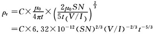 式中:C为全空间响应系数;S为接收回线线圈面积;N为线圈匝数;T为二次场衰减时间;V/I为接收的归一化二次场电位场值。该公式是在地面瞬变电磁数据处理的基础上加上全空间相应系数,使其演化为全空间视电阻率公式。