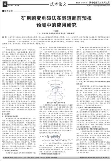 摘 要:介绍了瞬变电磁法在隧道中应用的基本原理,及该方法在隧道超前预报预测上的原理、技术、方法及应用。论述了矿用瞬变电磁技术在预报预测隧道掘进头前方赋水的有效性,总结出矿用瞬变电磁技术在隧道特殊环境应用中需注意的若干关键问题。通过实例证明瞬变电磁法可以很好地满足隧道超前预测、预报的要求。在实际工程勘探中,该方法可以准确反映出隧道前方地质体的赋水特征,为隧道防治水害提供了依据。(1.福州华虹智能科技股份有限公司,福建福州)