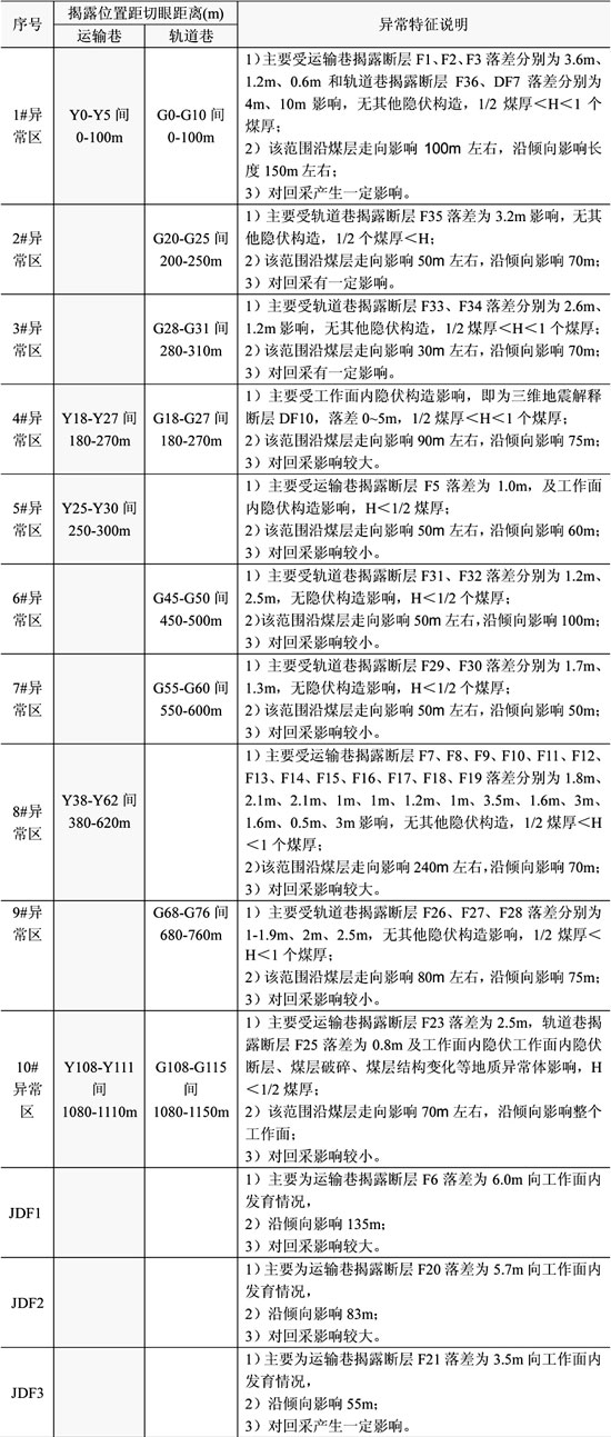2)1#透视异常区在回采过程中验证为煤层结构变化较大,出现4条小构造。