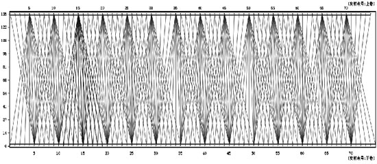 8103工作面共布置151个测点,其中运输巷道740m布置75个点、回风巷道750m布置76个点,28个发射点。提前一天标记点、一天采集数据,为了操作方便及保证数据的准确性,以切巷为基点,由里往外布点编号。其中,8103工作面运输顺槽,从开口开始标号,测点编号0~74;8103工作面回风顺槽,从开口开始标号,测点编号为0~75。具体测线布置方式如图2所示。
