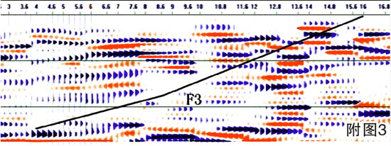 在长度4m~16m,深度25m~0m处存在一处异常,推测为断层(F3断层),见附图3(S1224工作面测线3探测成果图)