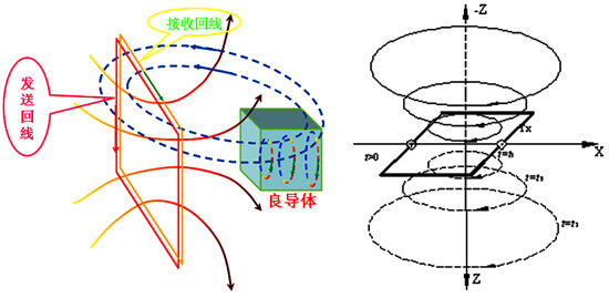 图1 良导体瞬变电磁感应原理图图 图2 全空间电磁场“烟圈”扩散示意图