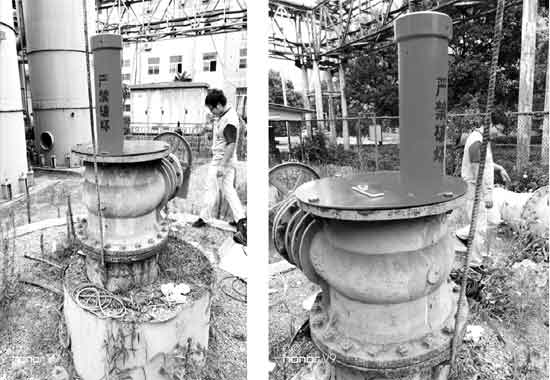 在前期现场踏勘中,我们发现这个瓦斯孔的孔口不同于正常的地面长观孔的孔口。如图4-1所示,瓦斯孔口被安装上了抗压阀,其孔口直径约0.67m,而本公司自主设计的防盗罩的直径约为0.15m,故需要重新加工配件才能够完成地面设备的安装。