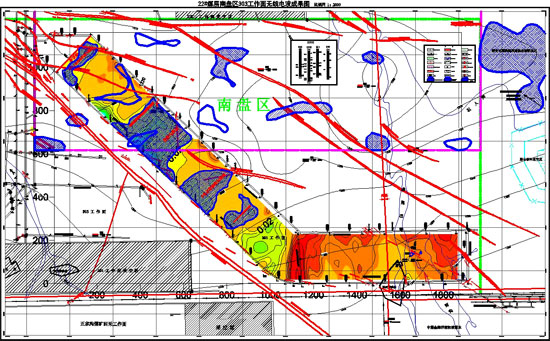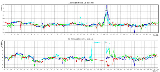 本次探测仪器工作稳定,接收数据较稳定,接收数据完整。对工作面局部存在电机干扰,但是不影响观测结果的数据,进行了数据保留。从附图1数据曲线图上可看出,采集数据变化平缓,不存在畸变点和数据偏低的情况,说明本次探测采集数据质量较高。