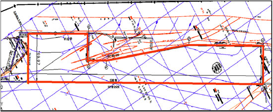 图1-1 3上605工作面综合物探探测施工范围示意图(图中红色圈定范围)
