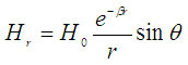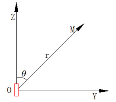 无线电波透视法又称坑透法[2]。井下煤层为近均匀、各向同性介质,当采用长度小于波长的短偶极子天线在一条巷道向煤层中发射电磁波(偶极子天线辐射场见图1,并使其在地下煤岩层介质中传播时,在距辐射源距离 r处的电磁场强度为Hr ,见公式(1),在另一条巷道的接收天线接收的是发射机所发射的电磁波在水平方向上电磁波的一个分量,且因为地下各种岩、矿石介质的电性(电阻率和介电常数等)不同,介质对电磁波能量吸收[3]程度不同,地下煤层与岩层相比表现为相对高阻,低阻(高电导率)岩层对电磁波具有较强的吸收作用,当电磁波传播过程中遇到断层、火成岩、陷落柱等地质构造所出现的物性差异界面时,电磁波会在异常界面上发生不同的反射与折射作用,也造成电磁波能量的损耗,从而导致接收巷道中的电磁波信号十分微弱甚至无法接收到透射信号,形成所谓的透射异常(又称阴影异常)[4]。通过分析回采工作面煤层、地质构造及地质体对电磁波的影响所造成的各种无线电波透视异常,进而进行地质规律推断与解释,这就是无线电波透视法的基础原理。