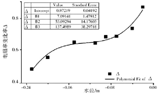 式中:△为电阻率的变化率;ρ1为提取07m水平剖面位置处不同水位深度电阻率值:ρ2为无水浸情况下的背景相应的电阻率值。