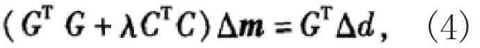 因式(3)参数太多,常采用基于平滑约束的最小二乘法,反演的到稳定性较高的光滑模型。此种方式求解△m的算法为