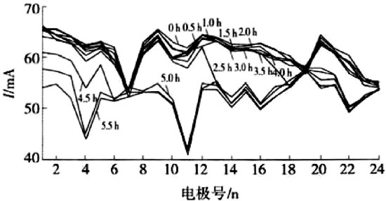 在2.0~2.5h这段时间内,19~23号电极电流也有明显升高。