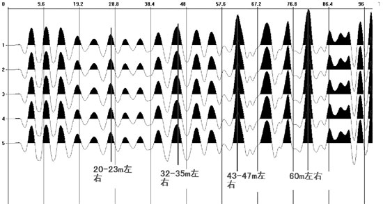 异常区域五距探测线60m推测为岩层分界或其他异常。