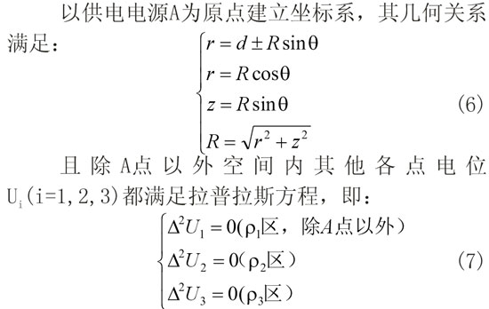 对式(7)进一步求解,可得ρ1岩层中点P位置的电位为: