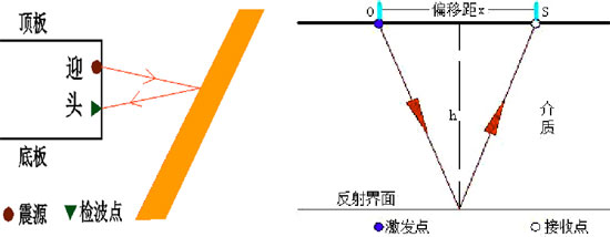 图2 地震波单点反射施工示意图 图3 地震波单点反射波路图