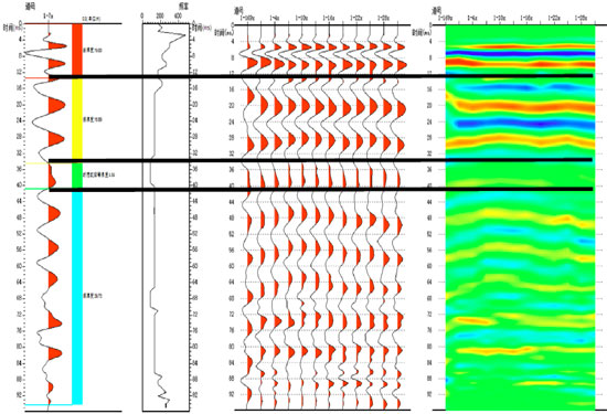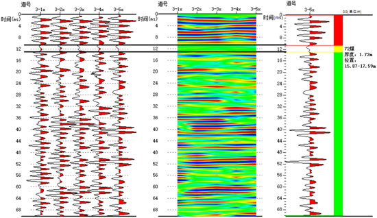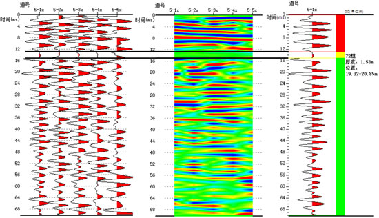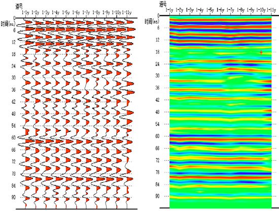 图4 地震勘探多道地震剖面图 图5 地震勘探色谱剖面图