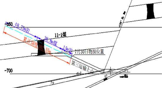 2.1 煤矿-700集中运输巷第三运输上山超前探测应用
