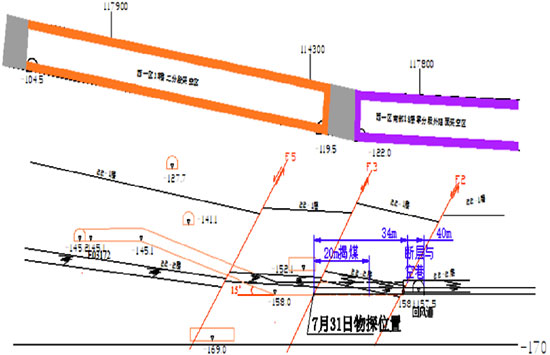 ③巷道侧翼已揭露断层跟踪及隐伏构造探测;