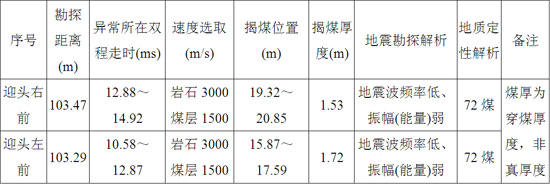表1 -700集中运输巷第三运输上山地震勘探地质异常解析表