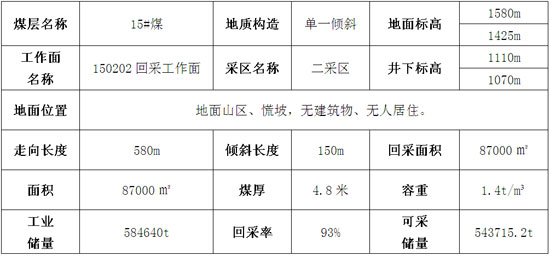 瓦斯:15#煤瓦斯含量6.0-8.24m³/t;相对瓦斯含量:11m³/t;绝对瓦斯含量:1.82m³/min;瓦斯压力:0.53Mp;原煤瓦斯含量:8.24m³/t。