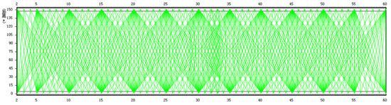 在以前坑透设备性能不强的情况下,单站接收距离比较短。单个测点能接收到的有效发射信号次数较少,数据叠加覆盖次数较低,造成坑透成果沿工作面走向探测分辨率相对较高,垂直于工作面走向探测分辨率较差的问题。此外,数据叠加次数较小,在实测中一旦混入干扰数据,缺乏其他数据对干扰数据的检验,干扰数据会最终体现到物探成果中,对探测结果影响较大。随着坑透仪器性能的提升,已经具备了延长同站观测长度,增加数据叠加次数的能力。在此特别设计完成如下探测实验,以检验使用效果。