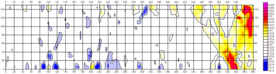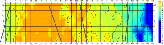 通过矿用无线电波坑道透视专用解析形成实测场强分布图和吸收系数分布图如下: