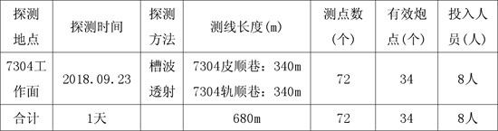 表3-1 7304工作面槽波勘探工作量一览表